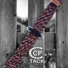 Cutter Cinch: a double layer of mohair cord wrapped on the buckles, with a woven center that measures approx 3" wide. Comes with one off billet keeper