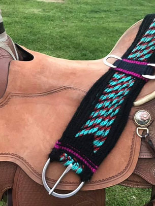 A few more of our custom Mohair Cinches. We offer and variety of colours, patterns, and hardware options. add a leather off billet keeper or dress it up with a concho or two!