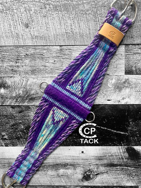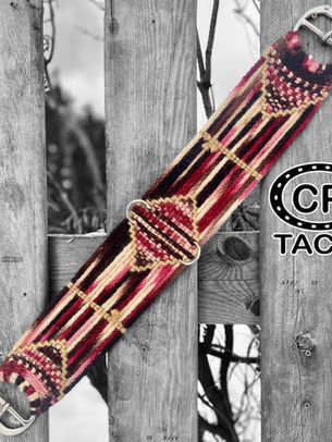 This beautiful, one of a kind tie dyed mohair breast-collar stayed local. The Mohair cord was hand dyed red and teal by CP Custom Tack. Contact us today to order your custom, one of a kind Mohair Tack!